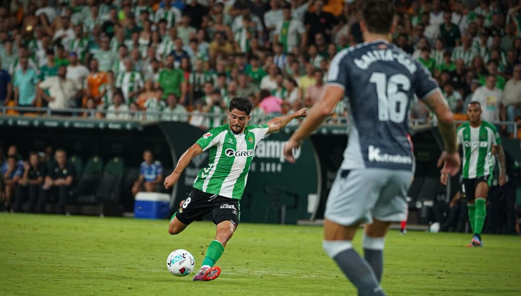 El partido comenzó con el Betis mostrando un plan valiente, atacando con Antony y Abde por los extremos. Cucho abrió el marcador tras una combinación con Lo Celso, definiendo con precisión ante Remiro. La Real reaccionó rápidamente gracias a Brais Méndez, que igualó con un disparo colocado tras un error en la salida de balón verdiblanca.